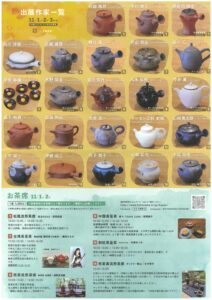 2025.10.30 お知らせ 「ぶらり常滑 急須の里めぐり」 のお知らせ 第11回ぶらり常滑 急須の里めぐり が開催されます 会場:常滑やきもの散歩道など 11月1日(土)2日(日)販売・茶席・実演 11月3日(月)祝 急須販売のみ 秋の三連休にどうぞお出かけ下さい